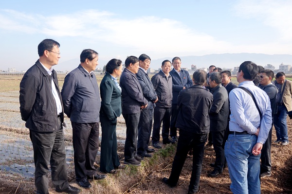 2015年11月16日,农工党中央常务副主席刘晓峰考察四川省凉山州西昌市西乡乡农产品环境保护试点项目