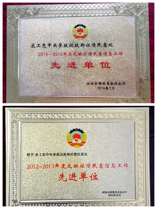 五年来,农工党中央共收到各省级组织、中央机关各部门、中央各专门工作委员会及党员报送的社情民意信息来稿13164件,中央经过筛选编辑向全国政协信息局编报《信息专报》1709件,全国政协信息局采用了245件,采用率达14.34%,高于全国政协信息局平均采用率。其中,13件社情民意信息得到国务院领导同志的高度重视,作出了重要批示。农工党中央领导带头深入调研,亲自撰写信息,陈竺主席、刘晓峰常务副主席撰写的多篇信息,由全国政协上报中共中央、国务院领导同志或报送相关部委,一些意见建议被采纳,极大地推动了相关工作的发展进步;分管参政议政工作的何维副主席不但在日常工作指导信息工作,也多次亲自撰写。中央领导率先垂范作用带动了广大党员的积极参与。许多省、市级组织的主要领导不但亲自收集、撰写社情民意信息,还把社情民意信息工作列为主委会、常委会等会议的重要议题,天津、福建等省级组织都已形成定期在领导班子的会议上研讨信息工作的机制。在各级领导同志的带动下,信息工作影响力不断扩大,越来越多的党员了解、熟悉和主动撰写社情民意信息。