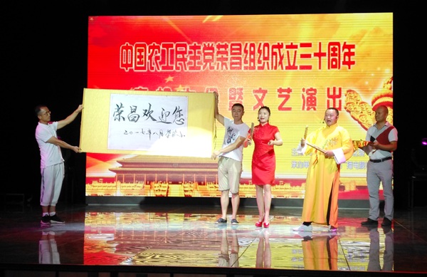 各界人士代表以及农工党荣昌组织全体党员参加庆祝大会,并观看了由农工党党员自编自演的文艺节目。(农工党重庆市委会)