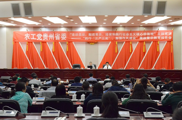 2016年9月28日,农工党贵州省委会在贵阳举行“走进基层、贴近党员,培育和践行社会主义核心价值观”主题宣讲——“践行‘三严三实’,加强作风建设”廉政警示教育报告会。会议由农工党贵州省委会专职副主委黄惠玲主持。