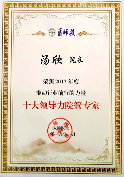 2018年1月9日,2018年《医师报》医学家峰会在北京召开。农工党天津市委会副主委、和平区委会主委、天津市眼科医院院长汤欣被评为2017年度推动行业前行的力量十大领导力院管专家。(农工党天津市委会)