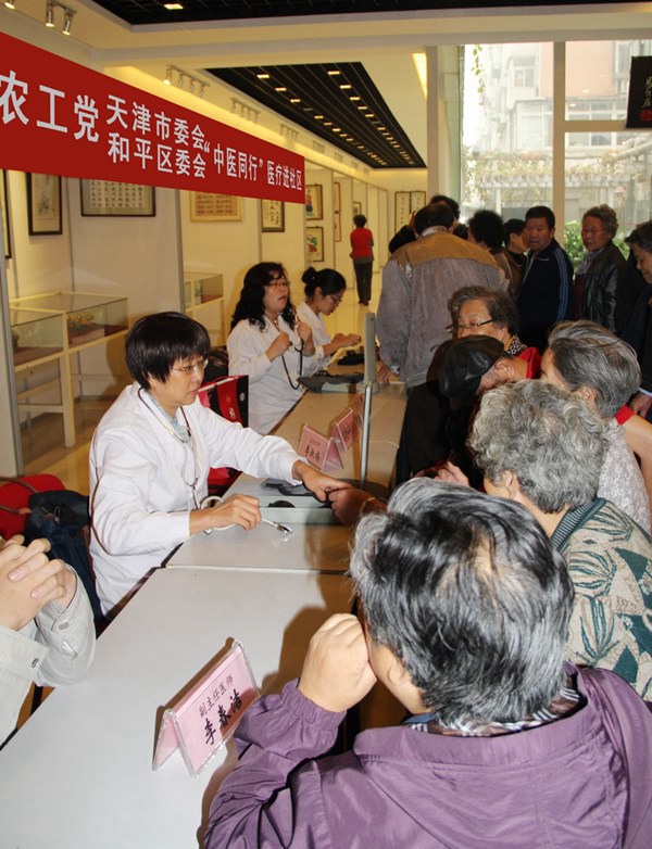 2014年10月25日,农工党天津市委会与和平区委会在庆友西里社区,联合举办“中医同行”医疗咨询进社区暨中医养生知识讲座活动。
