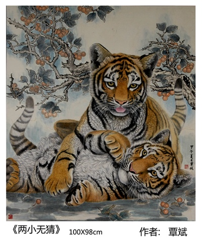 覃斌,男,广西百色市人,1967年出生,壮族,农工民主党员。自幼酷爱书画摄影艺术,擅长中国工笔画,更喜画工笔老虎,作品多次参加省级市级书画展并获奖。多幅工笔画作品被美国等外国友人收藏。现从事青少年书画艺术教学工作。覃斌积极参加农工党百色市委组织的书画艺术进社区,进校园,进敬老院等等公益活动。在参加农工党八一节送书画艺术进军营的活动中,《虎镇南疆》等作品深受广大官兵的喜爱。